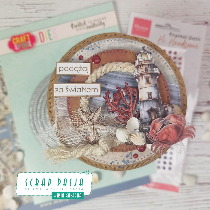 Do jej wykonania użyto wykrojnika CW348 oraz pięknej morskiej kolekcji Silent Sea od Stamperii, która wprowadza wakacyjny klimat.