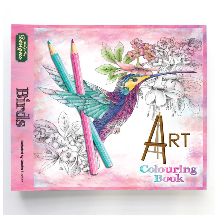 Ta książka zawiera obrazy pięknie narysowanych ptaków w tym wrona, kruk, kanarek, sowy, orła, kolibra i papugi.
