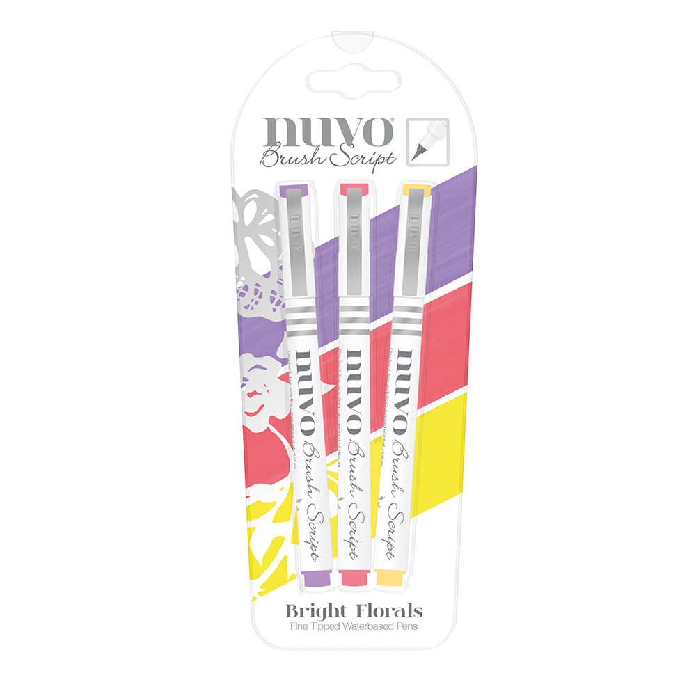 111N Tonic Nuvo Brush Script Pens - Bright Florals -zestaw 3szt