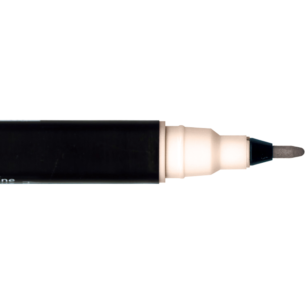 Z jednej strony pędzelek, z drugiej cienko pisząca 0.6-cio milimetrowa końcówka.