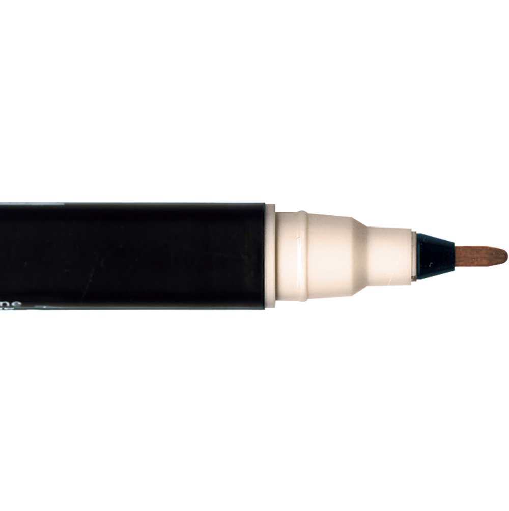 Z jednej strony pędzelek, z drugiej cienko pisząca 0.6-cio milimetrowa końcówka.