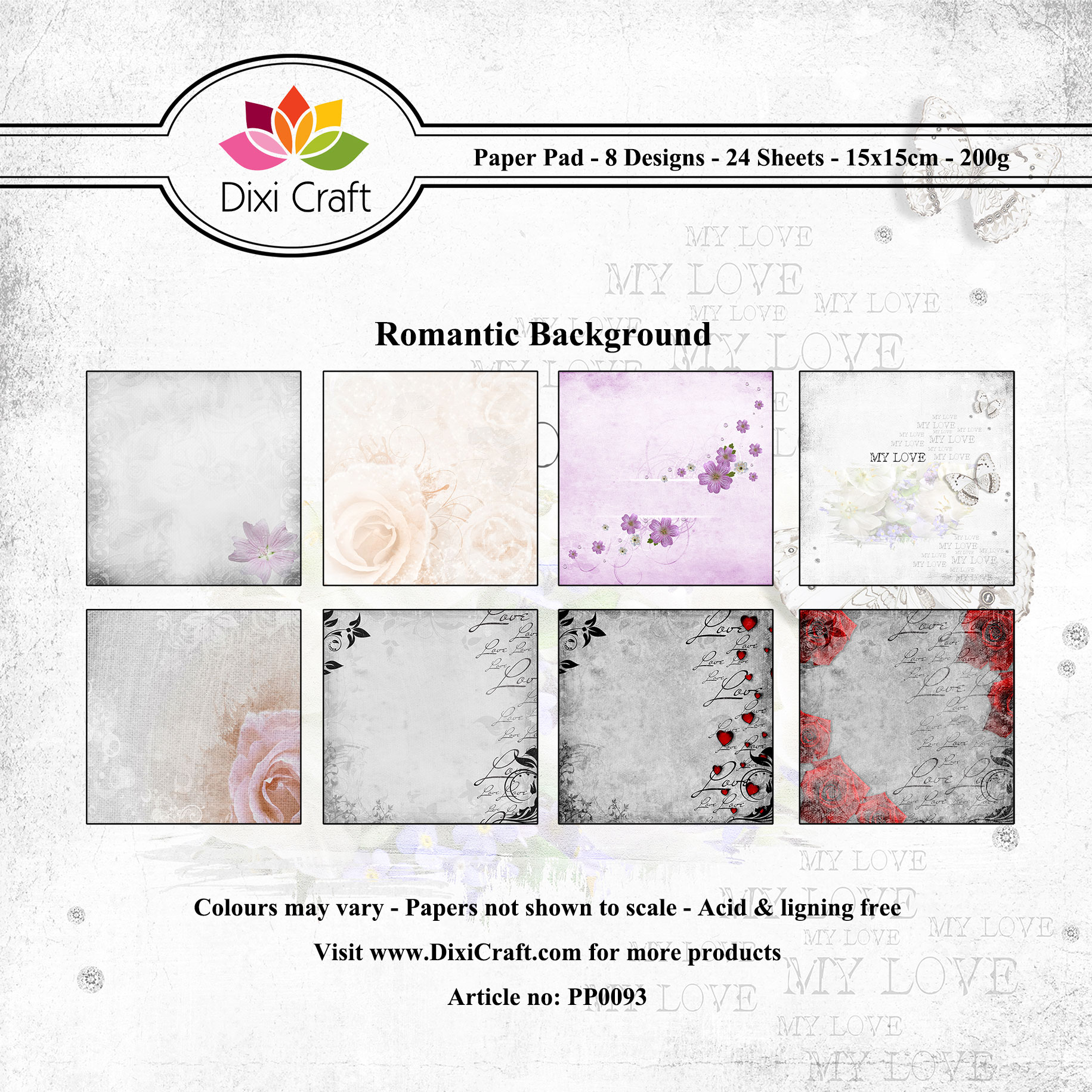 PP0093 Zestaw papierów 15x15cm Dixi Craft- Romantic Background