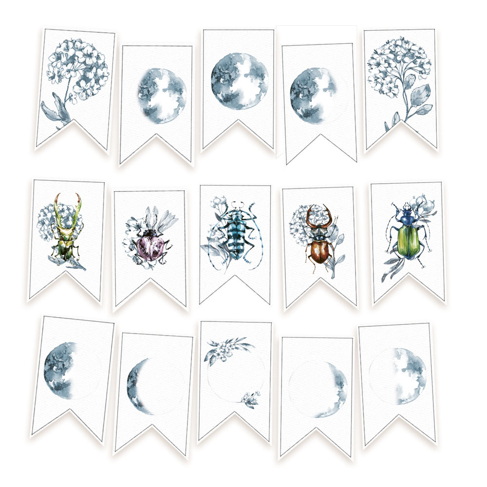 Zestaw wyciętych banerków, girlandy z kolekcji New moon.