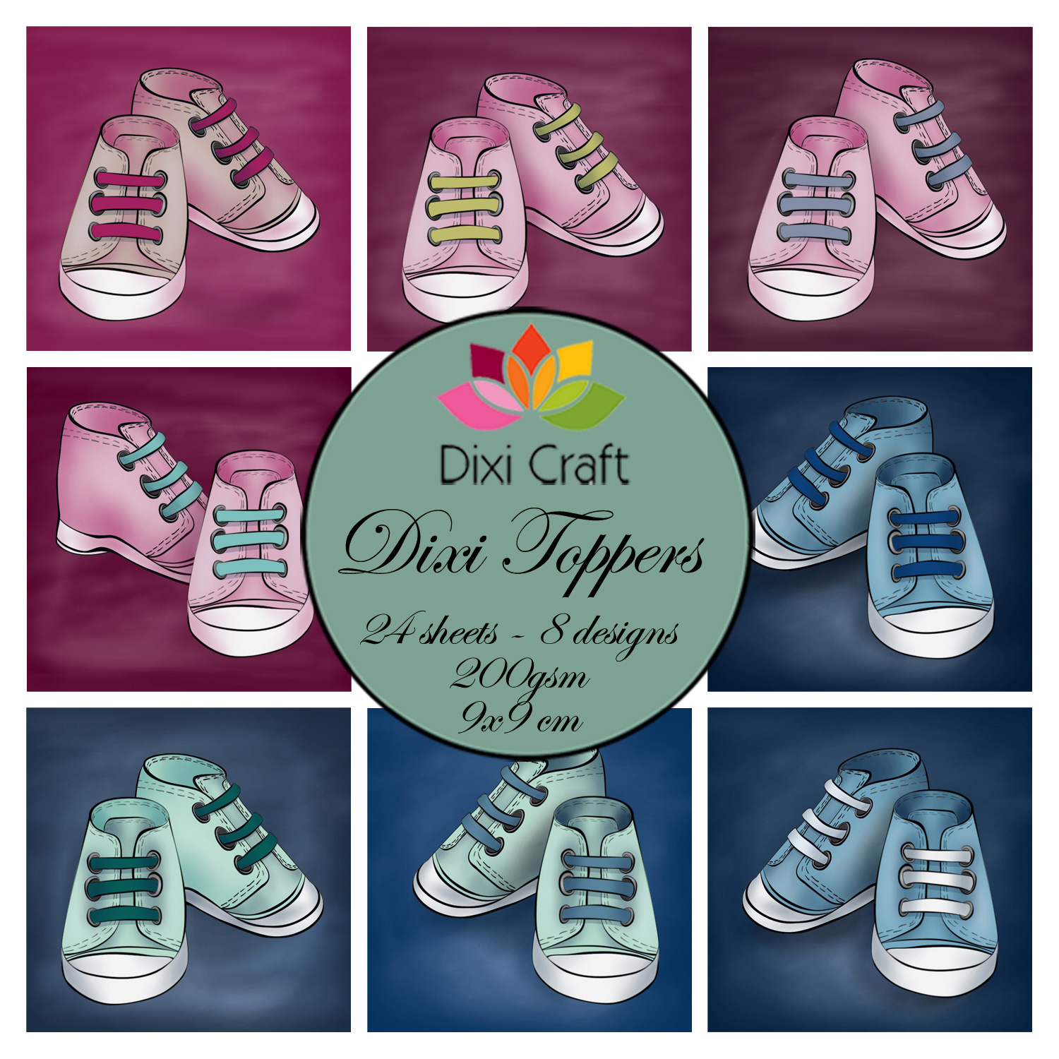 Zestaw papierów toppers 9x9cmZestaw zawiera 24 arkusze 8 wzorów,po 3 z każdego wzoru