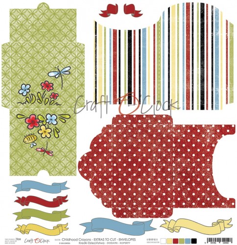 CC-DOD-KOP-CHC-26 CHILDHOOD CRAYONS - arkusz z KOPERTAMI do wycięcia 30,5x30,5cm
