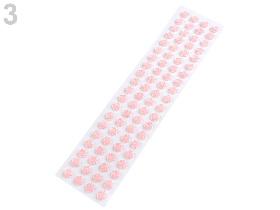 Kamyczki w kształcie róż o perłowym połysku prezentują się wspaniale. Wszystkie są naklejone na jednym arkuszu folii podkładowej, z której wystarczy je zdjąć. Róże są wzajemnie połączone paskiem klejącym, także tworzą rzędy. Razem są 4 długie rzędy (w każdym jest po 20 róż). Pasek ma długość 26,5 cm. Można go przycinać na pojedyncze sztuki.