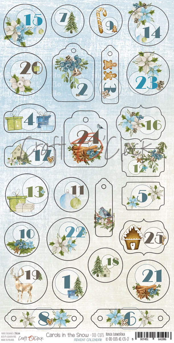 CC-DIE-CUTSAC-CTS-27 CAROLS IN THE SNOW - ELEMENTY DIE - CUTS - KALENDARZ ADWENTOWY - PREMIUM
