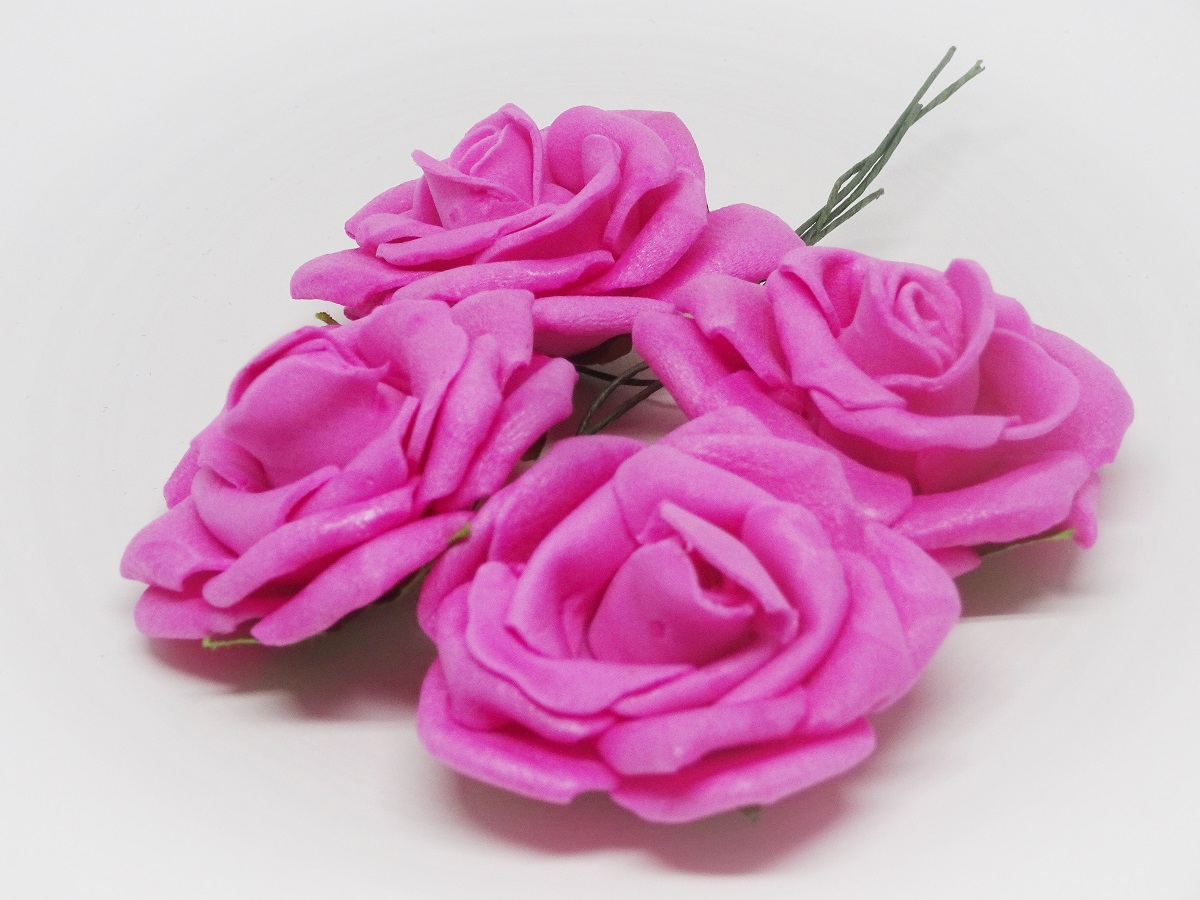 CKF-L-003 Piankowe róże 4cm/4szt -ciemnoróżowe