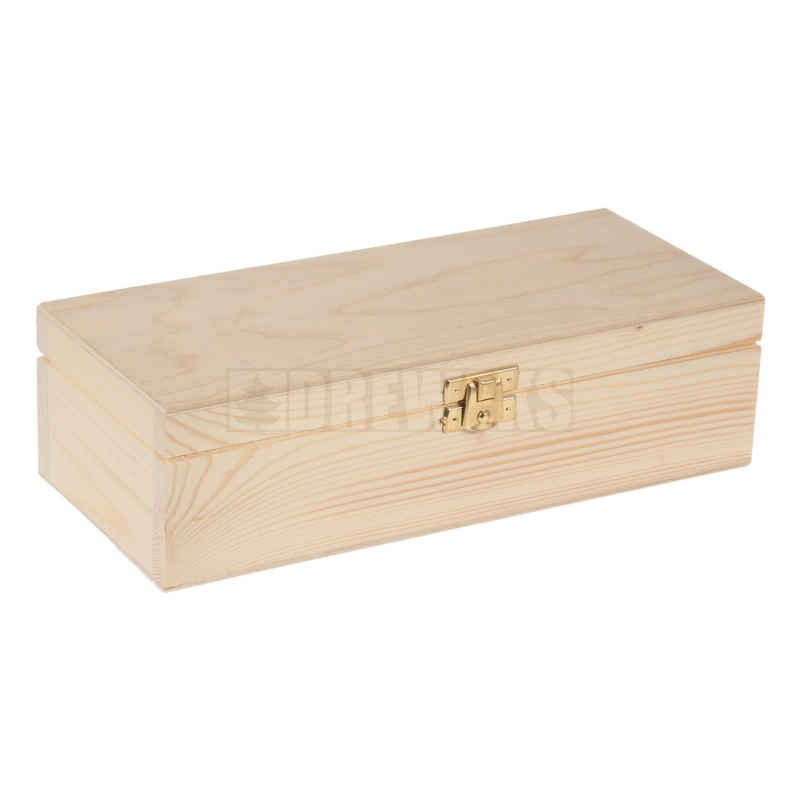 Kasetka z drewna z pokrywą, zamykana zapięciem metalowym, kształt prostokątny. Drewno ma wysoką jakość, oryginalny wygląd, gładka, gustowna kasetka, do zdobienia i malowania.