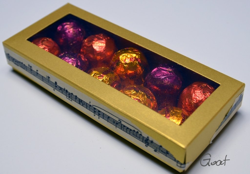 Z założenia pudełeczko zaplanowane jest tak, by idealnie zmieściło 10 pralinek o średnicy 3cm.