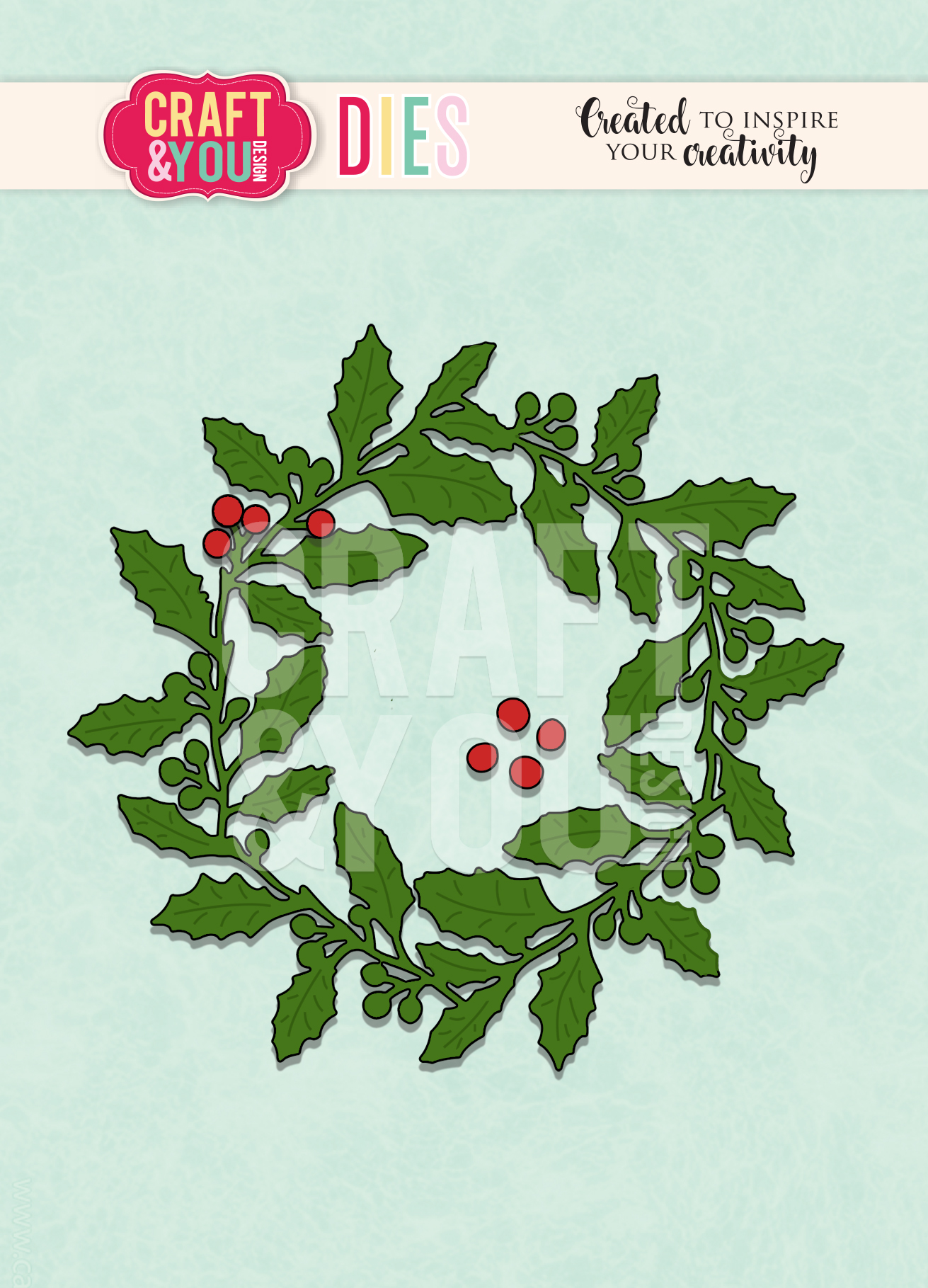 CW090 Wykrojnik /Die- Holly wreath-wianek ostrokrzew Craft&You Design