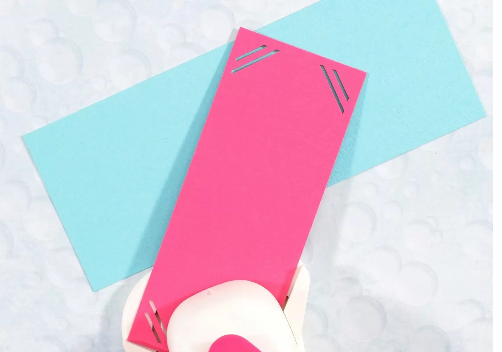 Ten kreatywny dziurkacz narożny wycina równoległe szczeliny w rogach projektów papierowych -włóż zdjęcie, kartę lub ozdobę do szczelin. Nie ma potrzeby stosowania kleju ani zszywek.