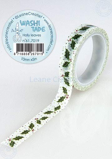 61.7019 Washi tape Holly leaves 10mm x 5m - taśma ostrokrzew