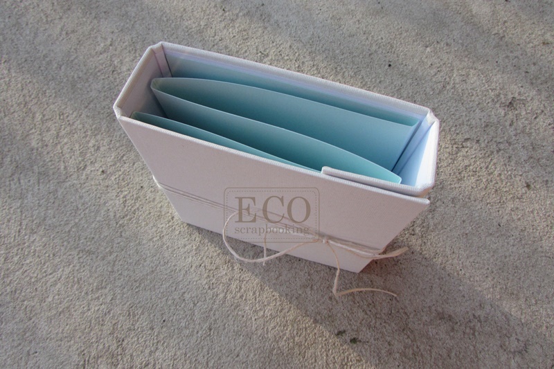 Wykonane z kartonu niebieskiego 230g, album składa się z 5 kart w formacie 130x130mm - wklejone w okładkę z tektury litej oklejonej białym płótnem