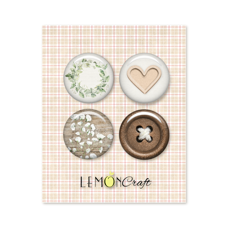 W zestawie znajdziesz 4 samoprzylepne buttony (plakietki) z różnymi motywami.