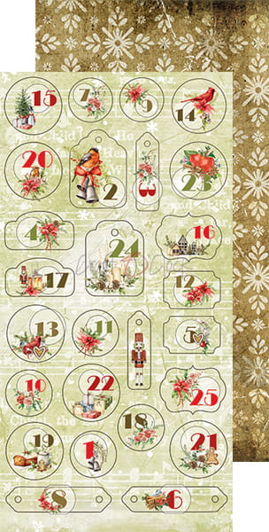 Zestaw 12 arkuszy wysokiej jakości dwustronnego papieru do scrapbookingu z dodatkami do samodzielnego wycięcia - 2x6 wzorów. Rozmiar każdego arkusza: 15,5x30,5cm. Gramatura papieru: 250g/m2. Plus dodatki/karty na odwrocie strony tytułowej.