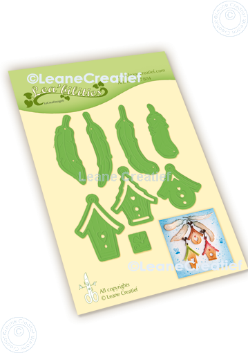 45.7804 Wykrojniki Leane Creatief - Birdhouses & Feathers cut and embossing die - piórka i domki dla ptaków