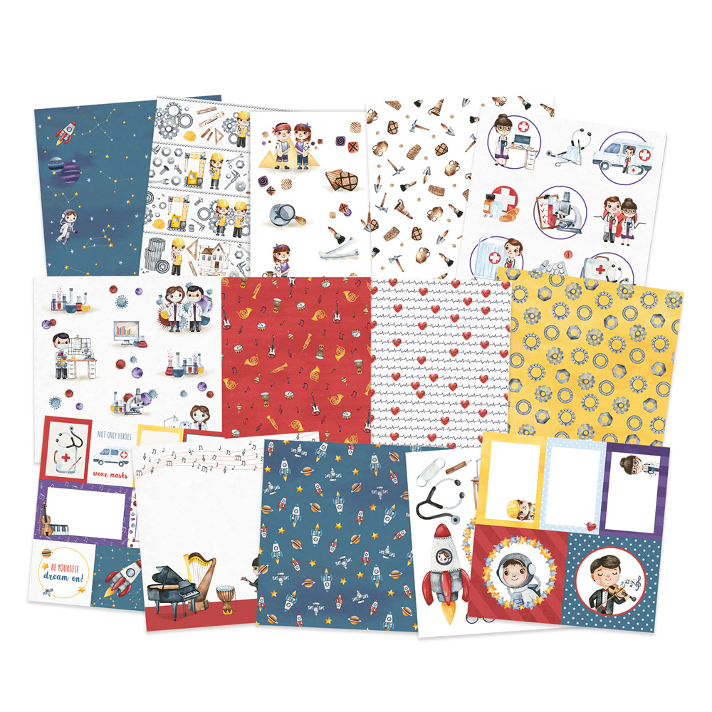 Zestaw dwustronnych papierów do scrapbookingu z kolekcji Forest tea party. Gramatura 240 gramów, wielkość arkuszy 6x6 cali. W skład zestawu wchodzą 24 sztuki (po 4 z każdego wzoru) i dwóch dodatkowych wzorów na przedniej i tylnej okładce.
