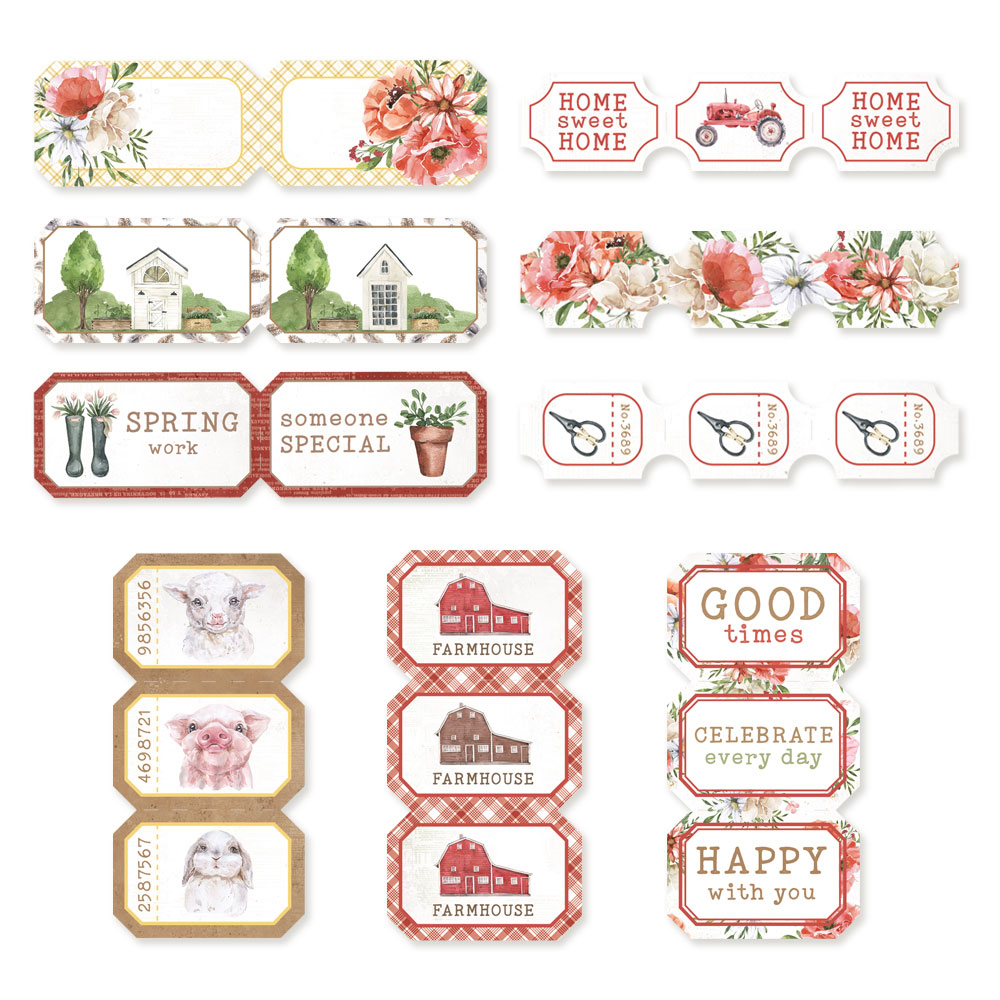 W zestawie znajduje się 9 elementów wyciętych z kolekcji Farm sweet farm. Idealne, by rozpocząć z nimi pracę już teraz, bez wycinania.