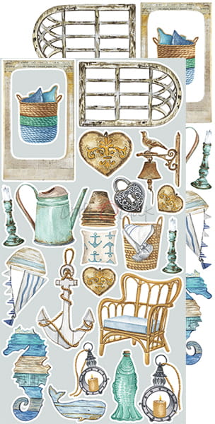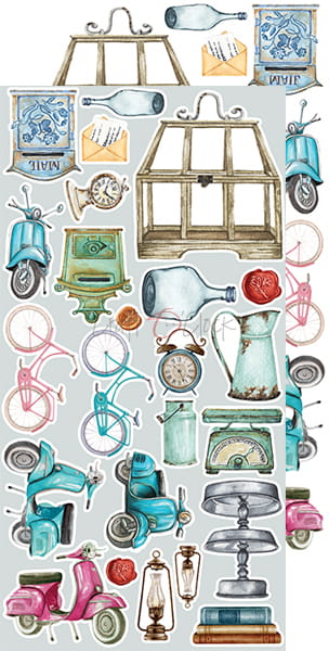 Zestaw 12 arkuszy wysokiej jakości dwustronnego papieru do scrapbookingu z dodatkami do samodzielnego wycięcia - 2x6 wzorów. Rozmiar każdego arkusza: 15,5x30,5cm. Gramatura papieru: 250g/m2. Plus dodatki/karty na odwrocie strony tytułowej.