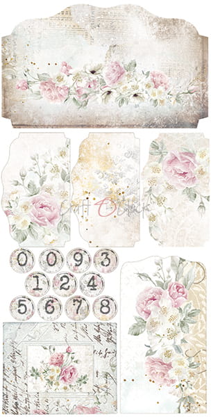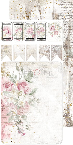 Zestaw 12 arkuszy wysokiej jakości dwustronnego papieru do scrapbookingu z dodatkami do samodzielnego wycięcia - 2x6 wzorów. Rozmiar każdego arkusza: 15,5x30,5cm. Gramatura papieru: 250g/m2. Plus dodatki/karty na odwrocie strony tytułowej.