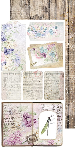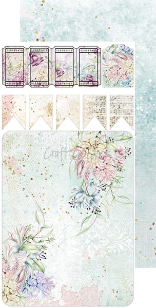 Zestaw 12 arkuszy wysokiej jakości dwustronnego papieru do scrapbookingu z dodatkami do samodzielnego wycięcia - 2x6 wzorów. Rozmiar każdego arkusza: 15,5x30,5cm. Gramatura papieru: 250g/m2. Plus dodatki/karty na odwrocie strony tytułowej.