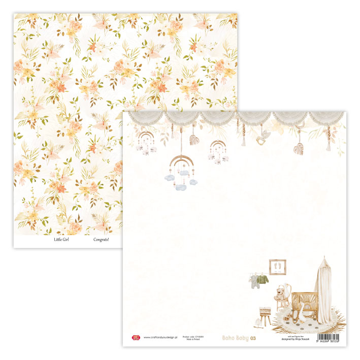 CP-BH03 Papier dwustronny Craft&You Design 30,5x30,5 Boho Baby 03