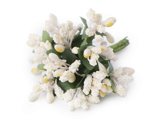 780759-12 Pręciki do kwiatów na druciku / bukiecik -jasny kremowy