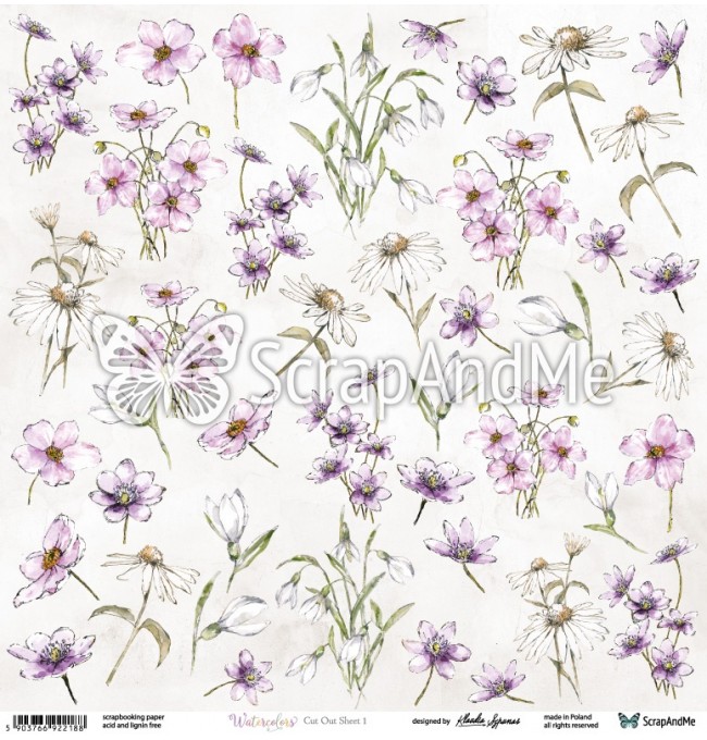 W-15 Watercolors Flowers 1 - Arkusz Do Wycinania - ScrapAndMe
