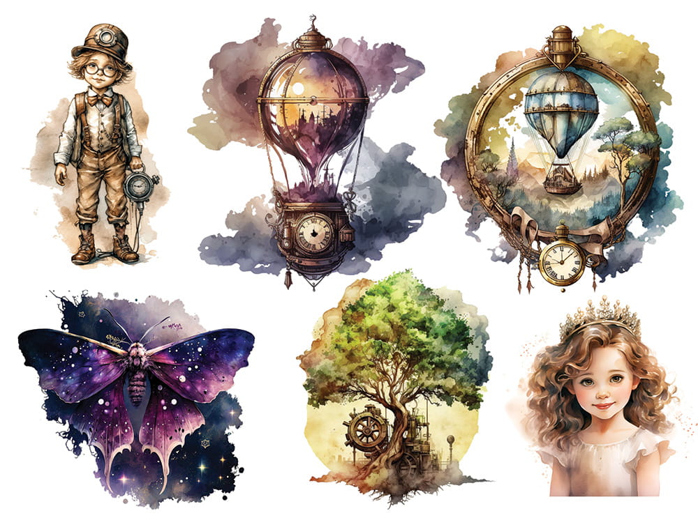 Zestaw składa się z 12 arkuszy 8x8'' (2x6) oraz okładki 6x8'' z dodatkami
