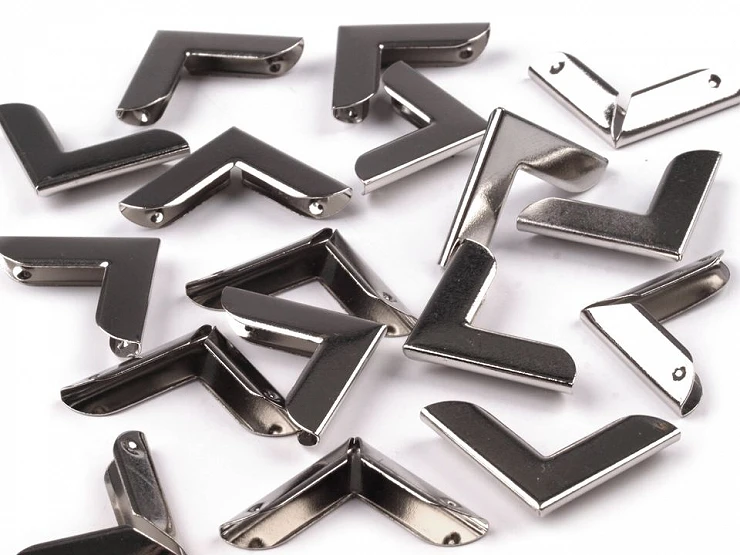 Narożnik jest to element chroniący i wzmacniający rogi torby. Może pełnić również funkcję dekoracyjną np: w różnego rodzaju segregatorach, teczkach, kalendarzach, obrazkach, kartkach, technikach scrap itd. Narożnik zakładamy na róg np: torby i delikatnie ściskamy go szczypcami, tak aby dobrze trzymał się na danej powierzchni. Narożnik jest idealny do materiałów o grubości max. 4 mm.