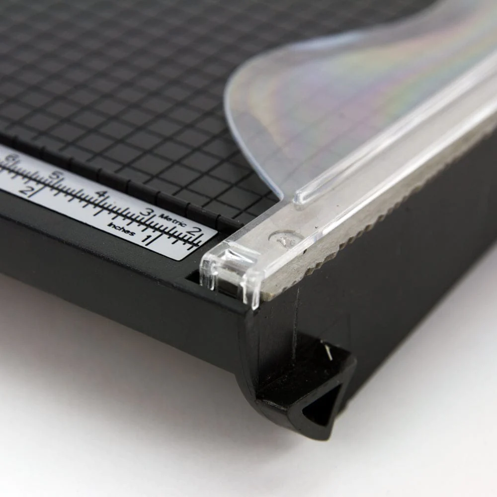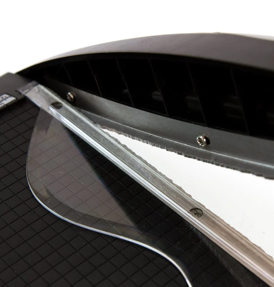 Gilotyna do rozdartych krawędzi Tim Holtz - doskonały efekt postrzępionych krawędzi. ✓ Precyzyjnie szlifowane ostrza ze stali nierdzewnej. ✓ Długość cięcia do 22 cm/8,5 cala ✓ Szerokość cięcia 15 cm/6" ✓ Listwa dociskowa zapewniająca, że materiał tnący nie poruszy się podczas procesu cięcia. ✓ Linijki pomiarowe wbudowane w górną i dolną część podstawy tnącej trymera zapewniają całkowitą dokładność cięcia. ✓ Linie siatki o grubości 0,6 cm / 0,25 cala uformowane w podstawie trymera zapewniają idealne wyrównanie w procesie cięcia. ✓ Komfortowy uchwyt Kushgrip zmniejszający zmęczenie dłoni ✓ Antypoślizgowe nóżki zapobiegające przesuwaniu się produktu podczas użytkowania