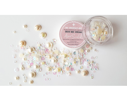 Deco mix cream to półperełki, cekiny, kryształki w kolorach kremowych i opalizujących.
