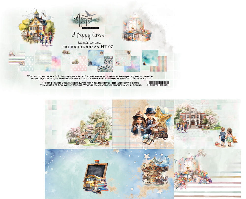 AA-HT-07 Zestaw papierów do scrapbookingu 12x12"/ 30,5 x 30,5 cm - Happy Time - Alchemy of Art
