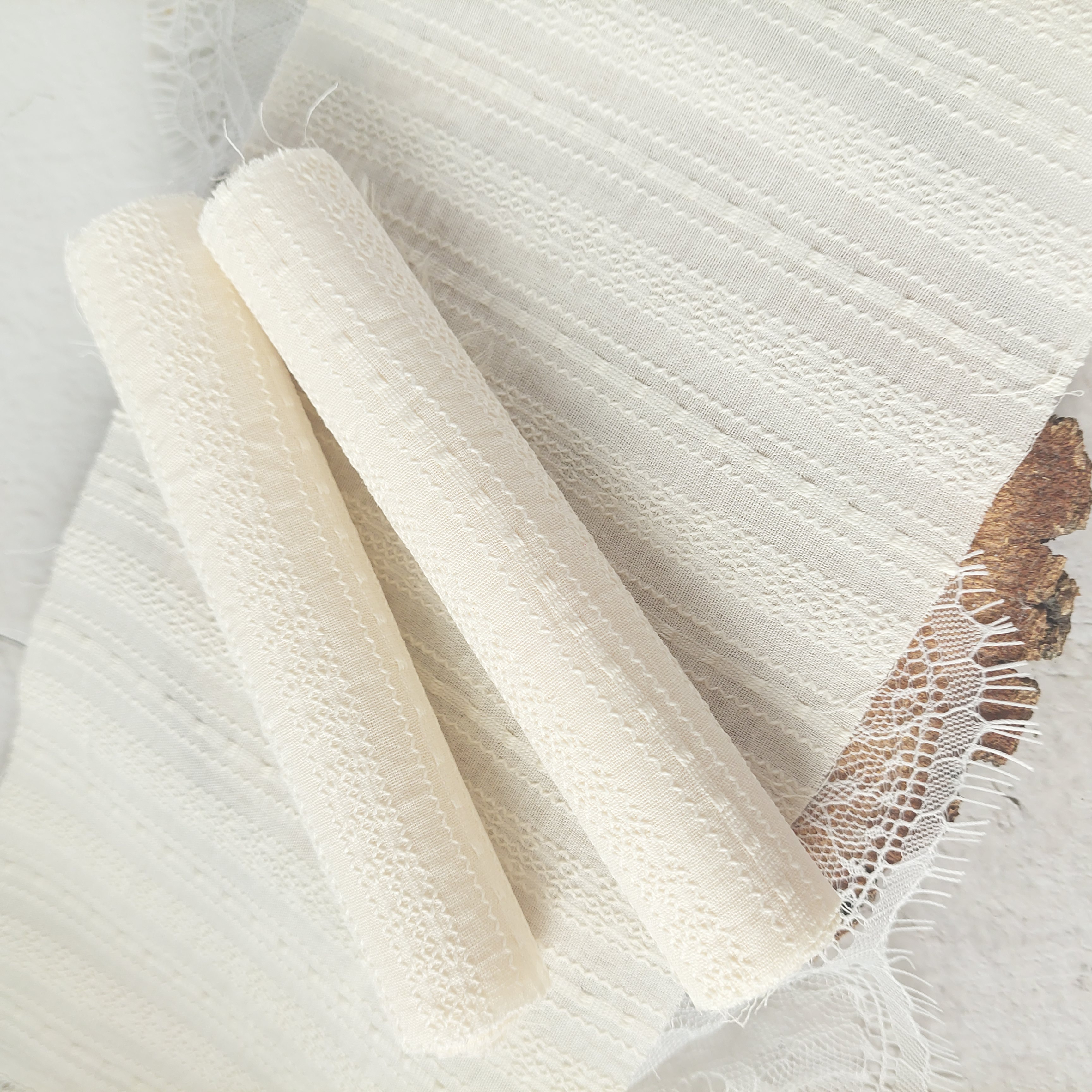 TKKOR-02 Materiał Bawełna Usztywniona - efekt koronki - KREMOWY