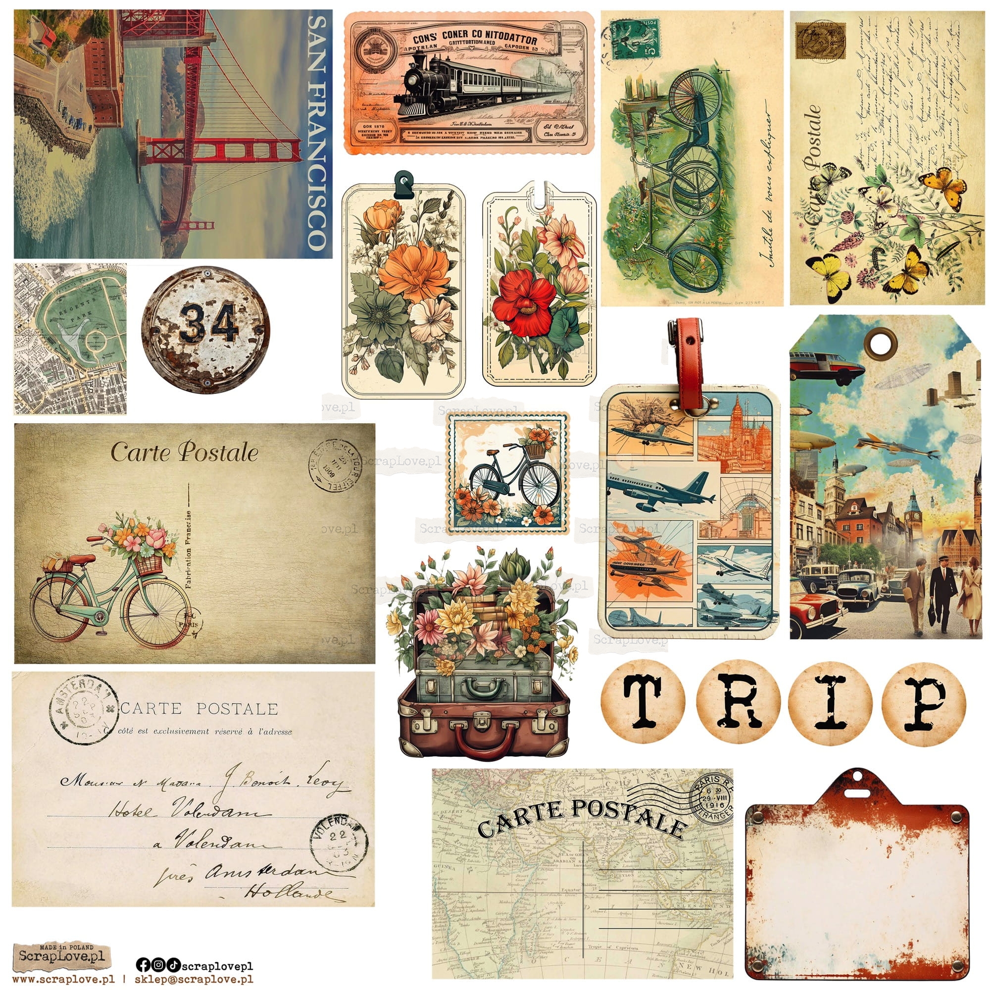 NSL-11 Naklejki papierowe Scraplove - VINTAGE TRAVEL 2