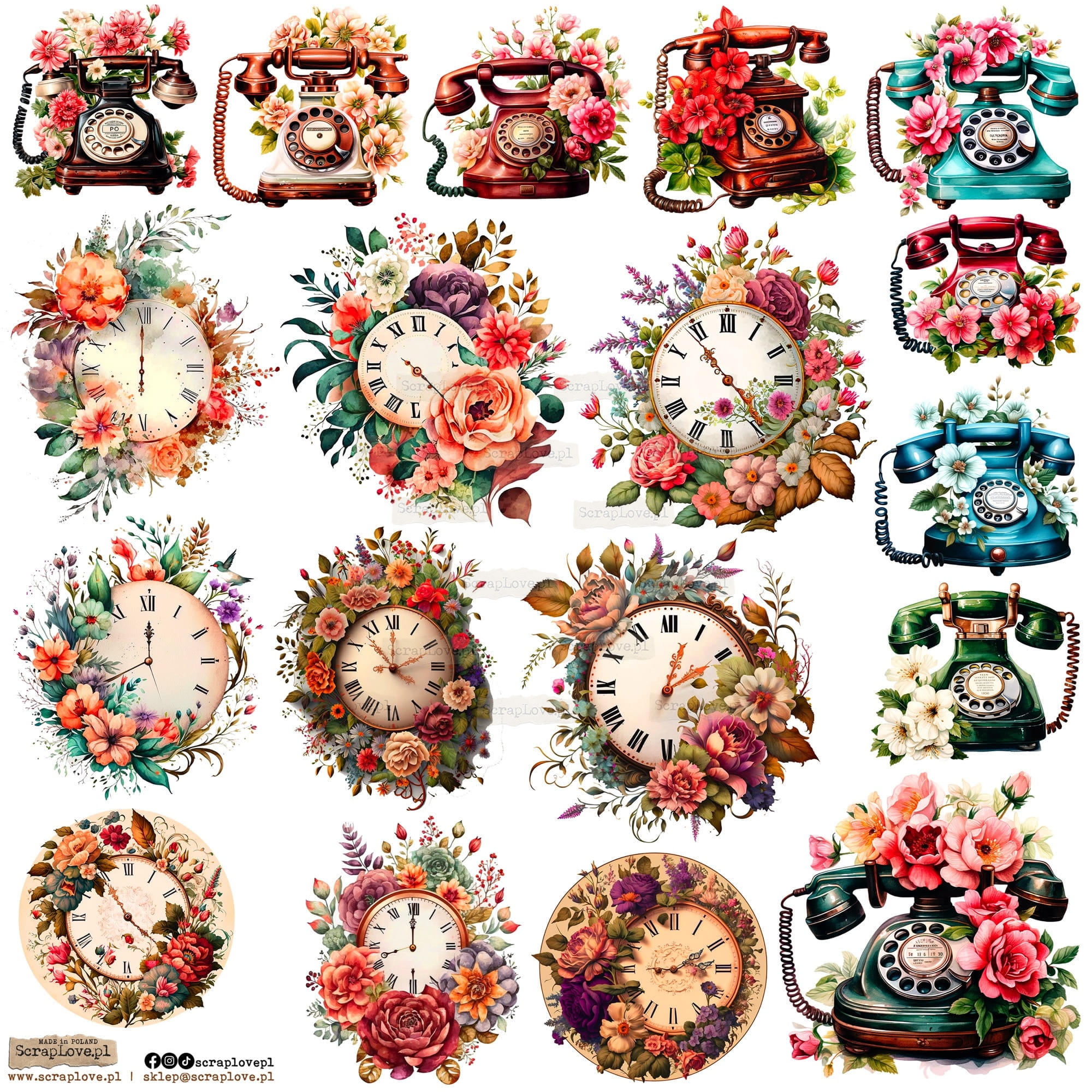 NSL-27 Naklejki papierowe Scraplove - CLOCK $ TELEPHONE