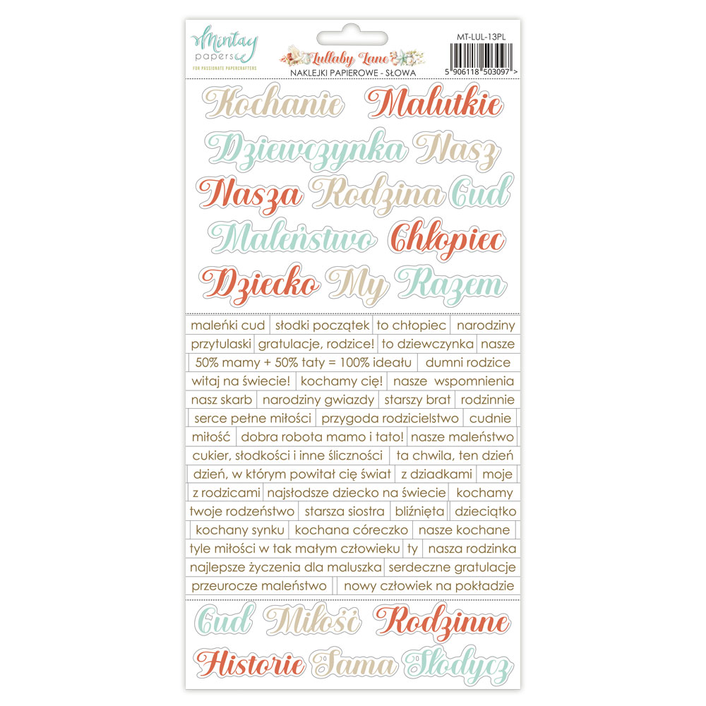 MT-LUL-13PL LULLABY LANE- MINTAY PAPERS - Naklejki - SŁOWA PL - 15,2 x 20,3 cm