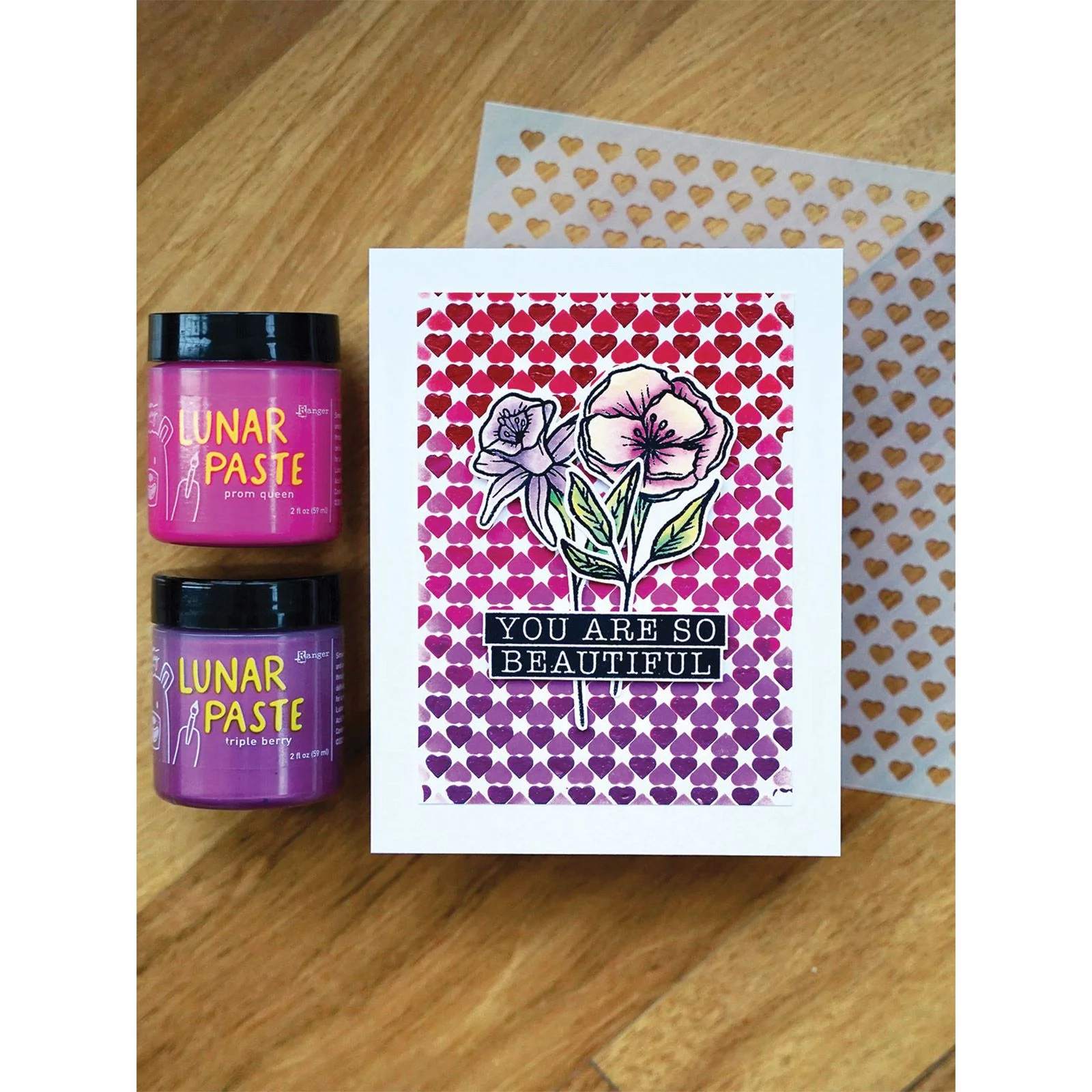 Pastę Lunar można nakładać za pomocą szpachelki na szablon lub bezpośrednio na papier, aby stworzyć ładne tło.