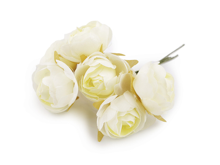 Sztuczne mini różyczki mocowane są na druciku owiniętego taśmą florystyczną. Z łatwością można je wyginać i kształtować.