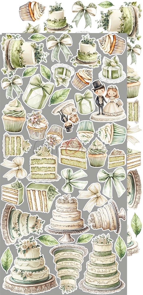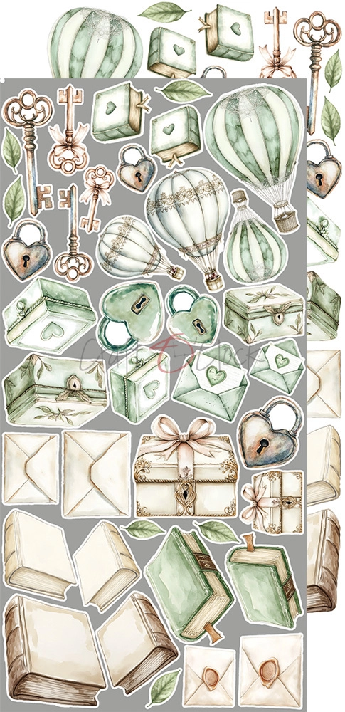 Zestaw 18 arkuszy wysokiej jakości dwustronnego papieru do scrapbookingu z dodatkami do samodzielnego wycięcia - 2x9 wzorów. Rozmiar każdego arkusza: 15,75x30,5cm. Gramatura papieru: 250g/m2.