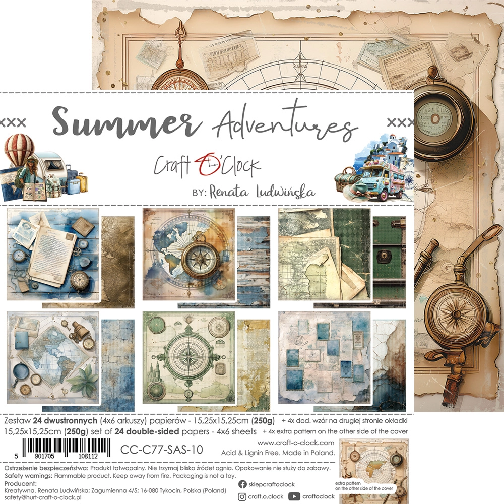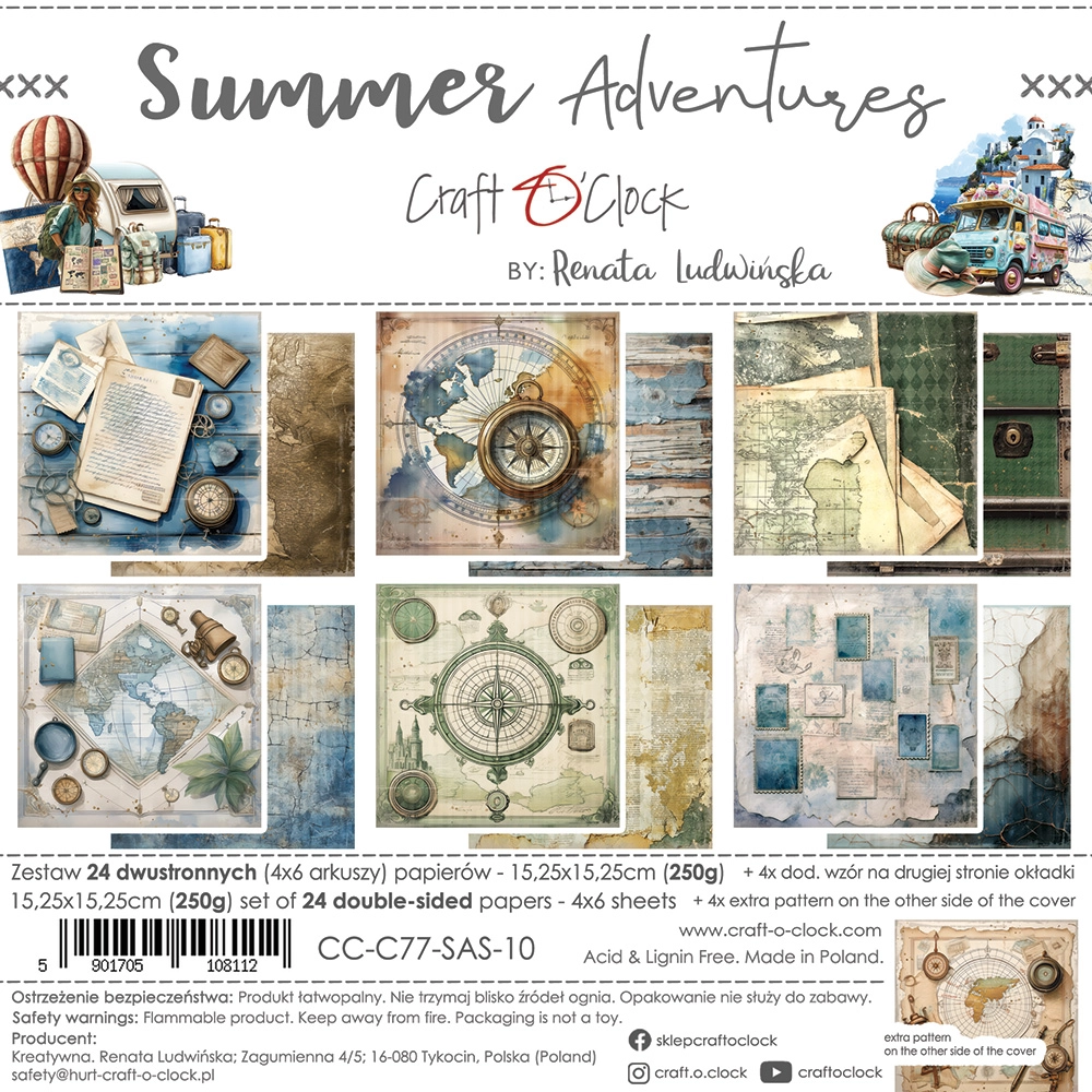 CC-C77-SAS-10 SUMMER ADVENTURES- zestaw papierów 15,25x15,25cm