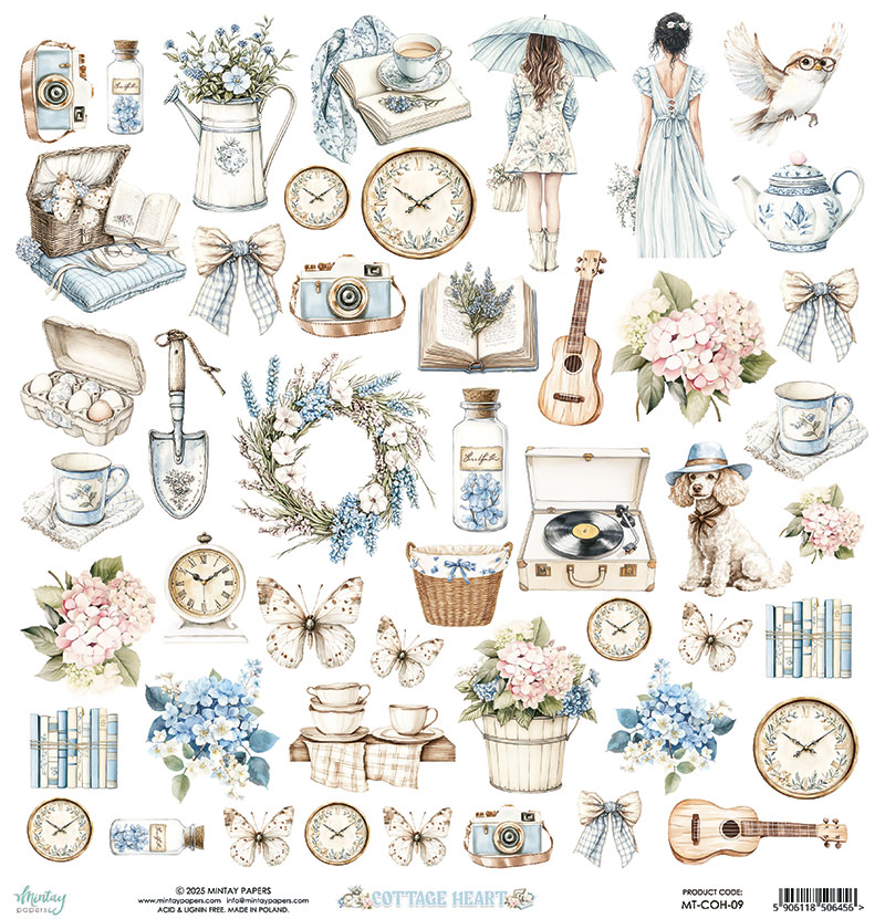 MT-COH-09 COTTAGE HEART- Mintay -papier dwustronny z elementami 30,5x30,5cm