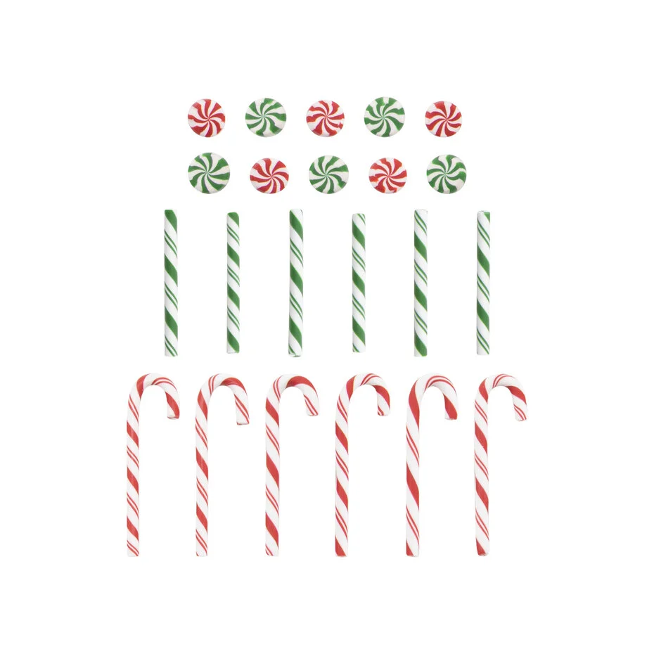 Dodaj słodki klimat świątecznym projektom z zestawem Confections od Tim Holtz / Idea-ology! To uroczy komplet miniaturowych dekoracji przypominających cukierki: lizaki, miętówki, patyczki — stworzony z tworzywa w realistycznym stylu.