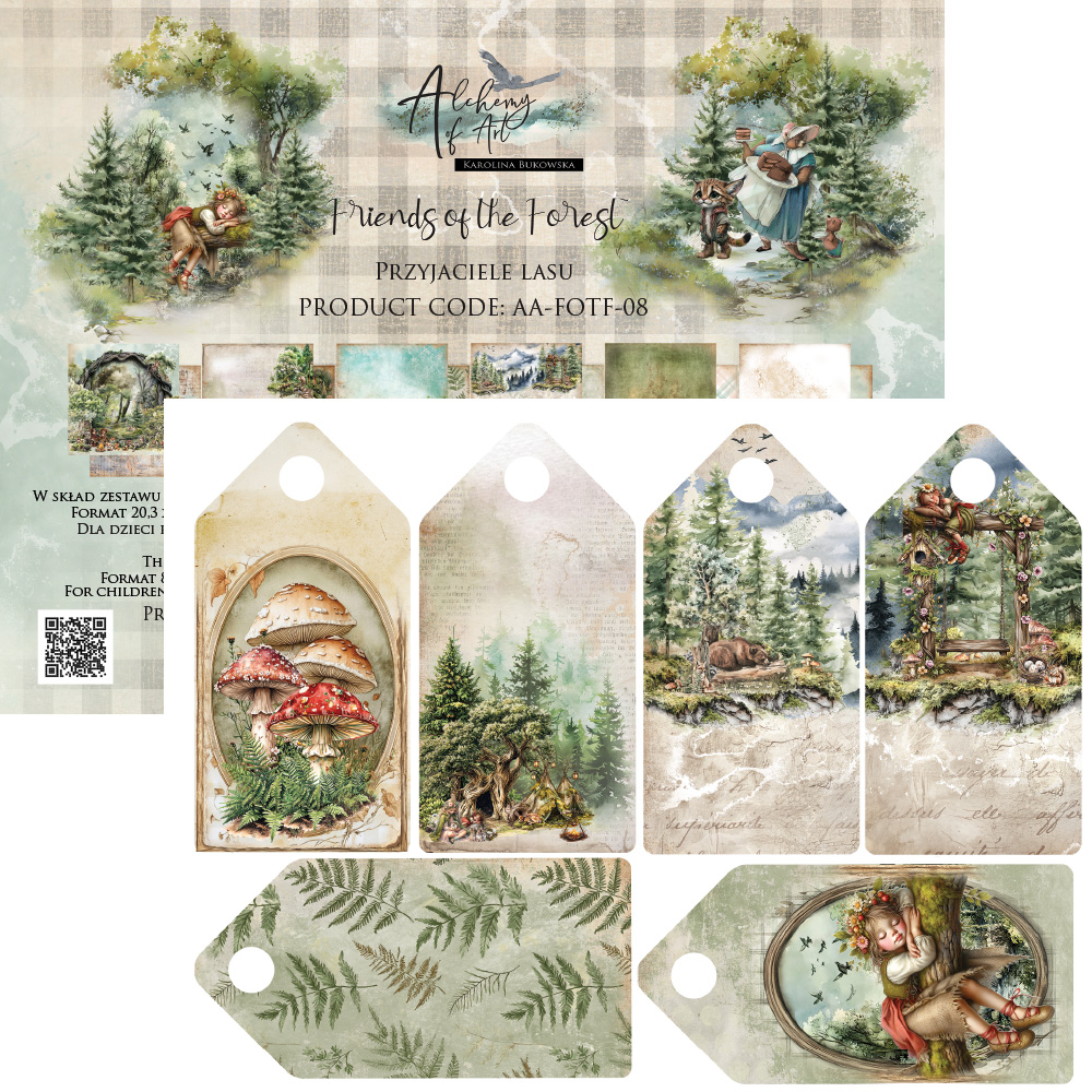 AA-FOTF-08 Alchemy of Art - 8x8'' - zestaw papierów 20,3x20,3cm-Przyjaciele lasu/Friends of the Forest