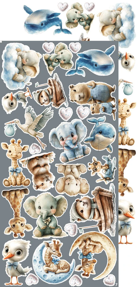 estaw 18 arkuszy wysokiej jakości dwustronnego papieru do scrapbookingu z dodatkami do samodzielnego wycięcia - 2x9 wzorów. Rozmiar każdego arkusza: 15,75x30,5cm.
