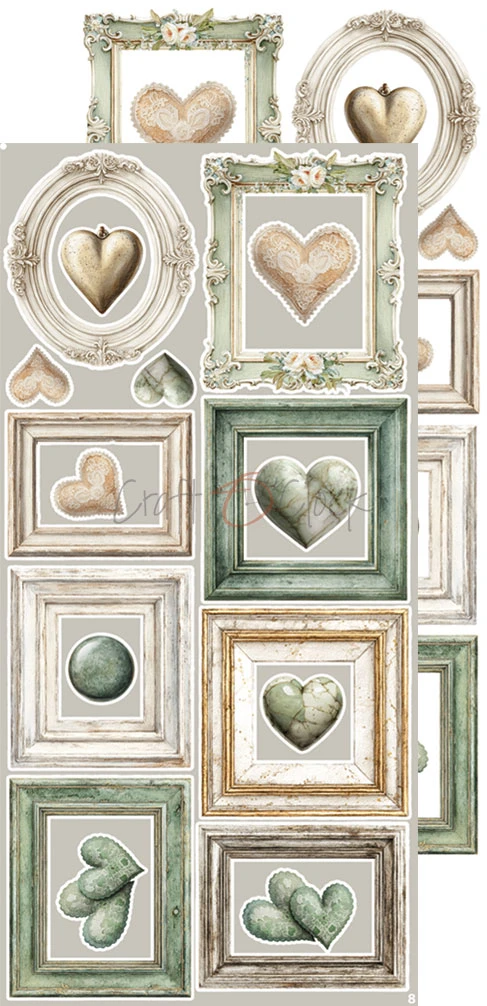 Zestaw 18 arkuszy wysokiej jakości dwustronnego papieru do scrapbookingu z dodatkami do samodzielnego wycięcia - 2x9 wzorów. Rozmiar każdego arkusza: 15,75x30,5cm. Gramatura papieru: 250g/m2.