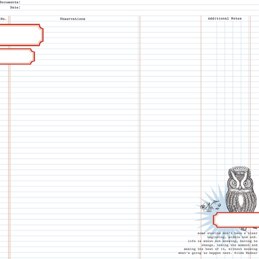 TCSN1004 Papier dwustronny 30,5 x 30,5 cm Owl Ledger - Stationery Noted Teresa Collins