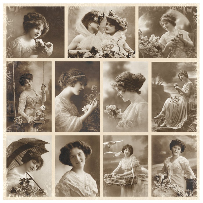 Papier ozdobny - zdjęcia LADIES w tonacji sepiaRozmiar arkusza 12x12 cali (30,5x30,5cm)
